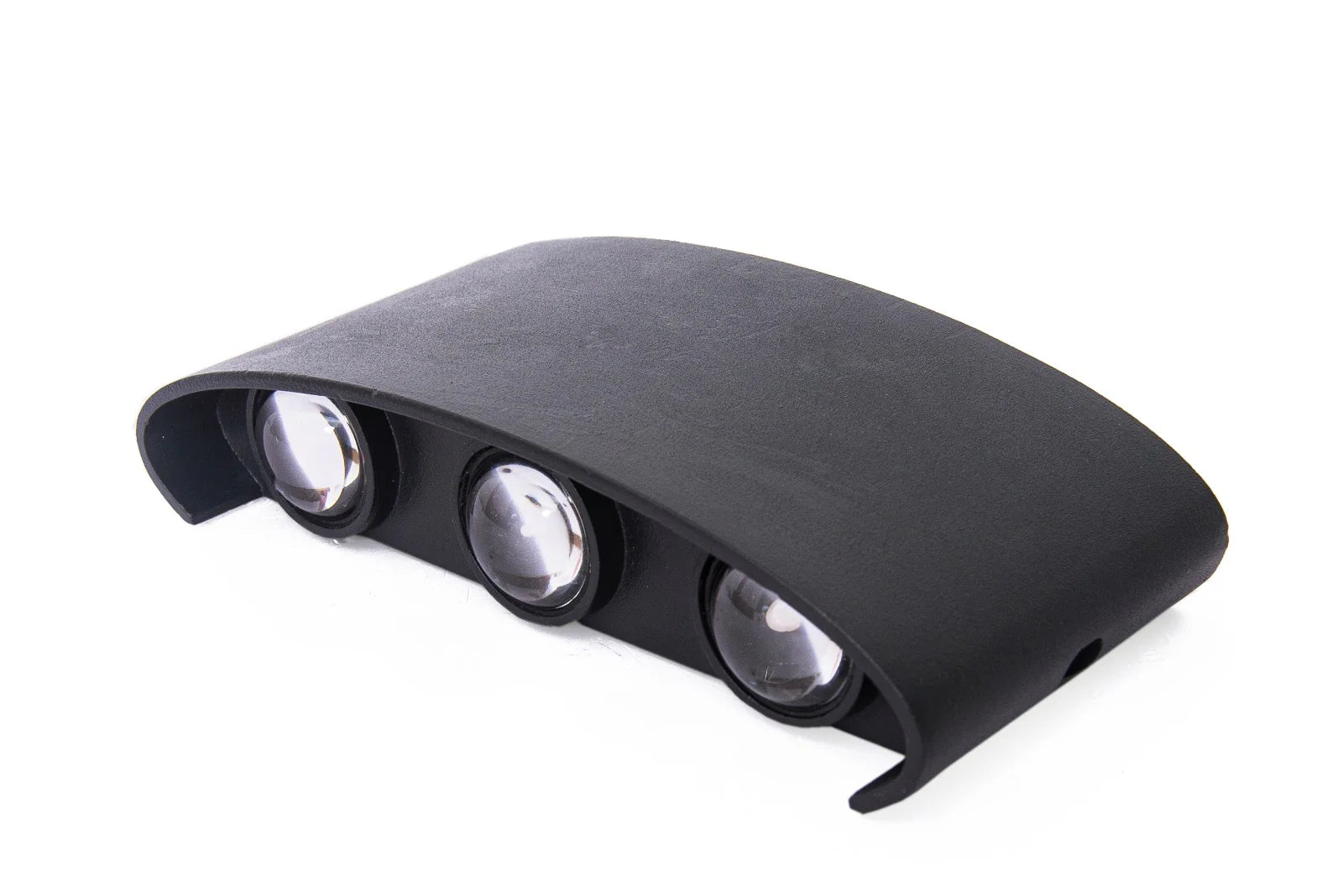 Aplica LED Kani cu latimea de 17 cm, inaltimea de 5, iar lungimea de 8 cm, confectionata din metal negru, cu 6 surse de iluminat tip banda LED, cu o putere de 6 W.