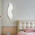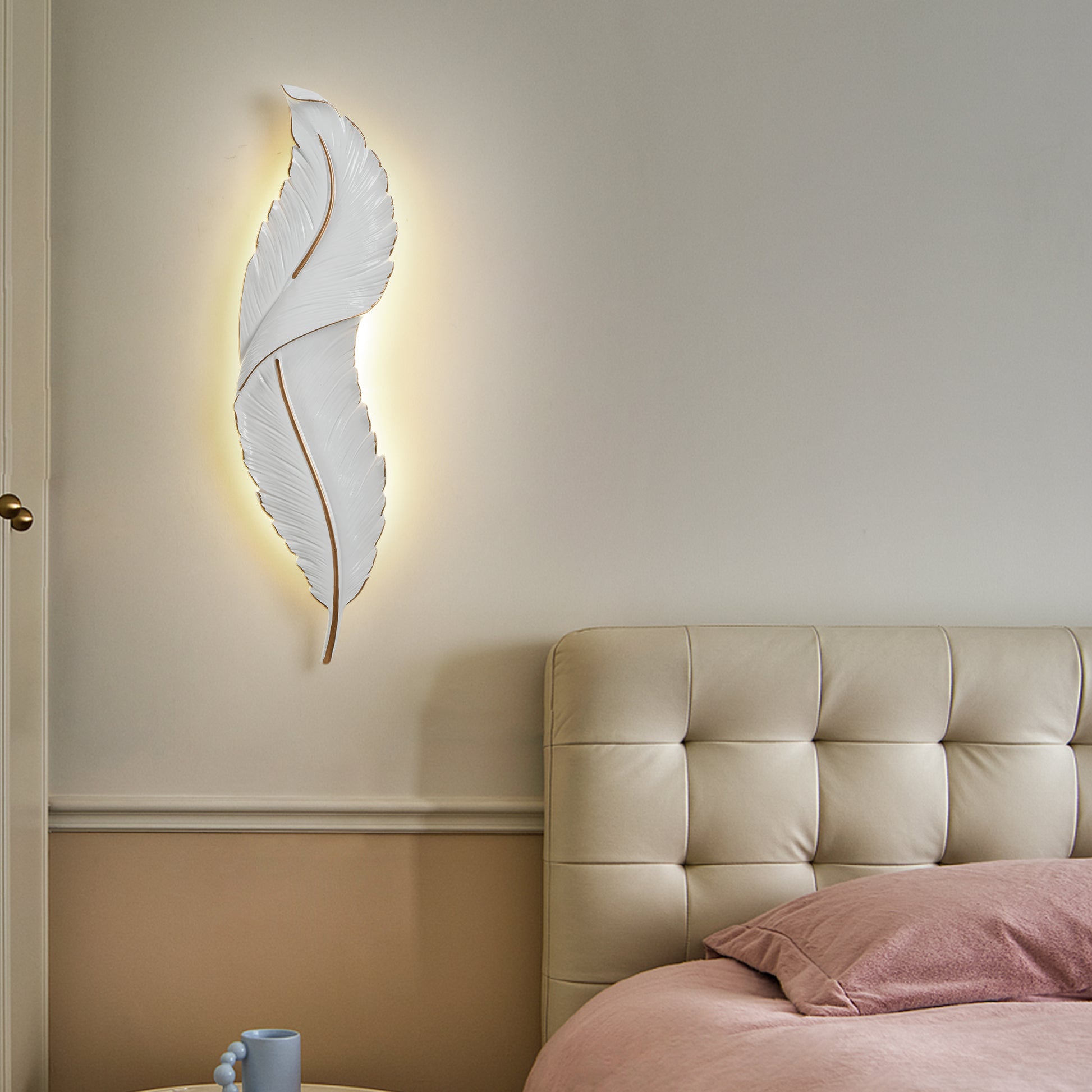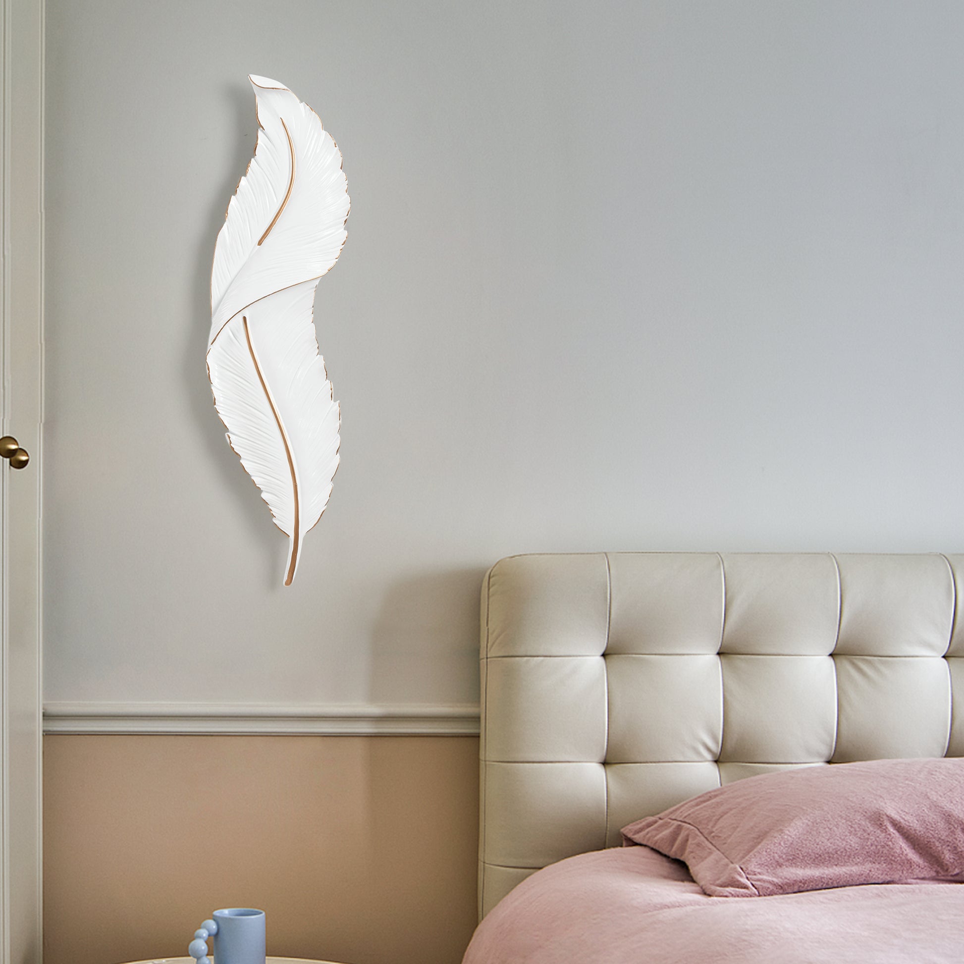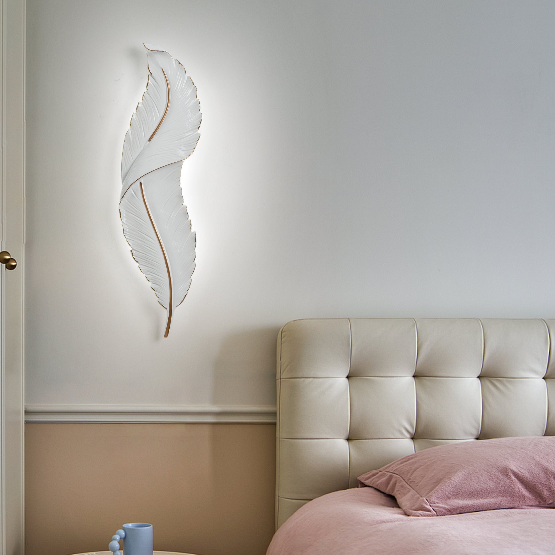 Aplica LED Feather cu latimea de 20 cm, inaltimea de 6 cm, iar lungimea de 85 cm confectionata din metal si ceramica, cu 2 surse de iluminat tip banda LED, cu o putere de 56 W si 4 tipuri de lumina.