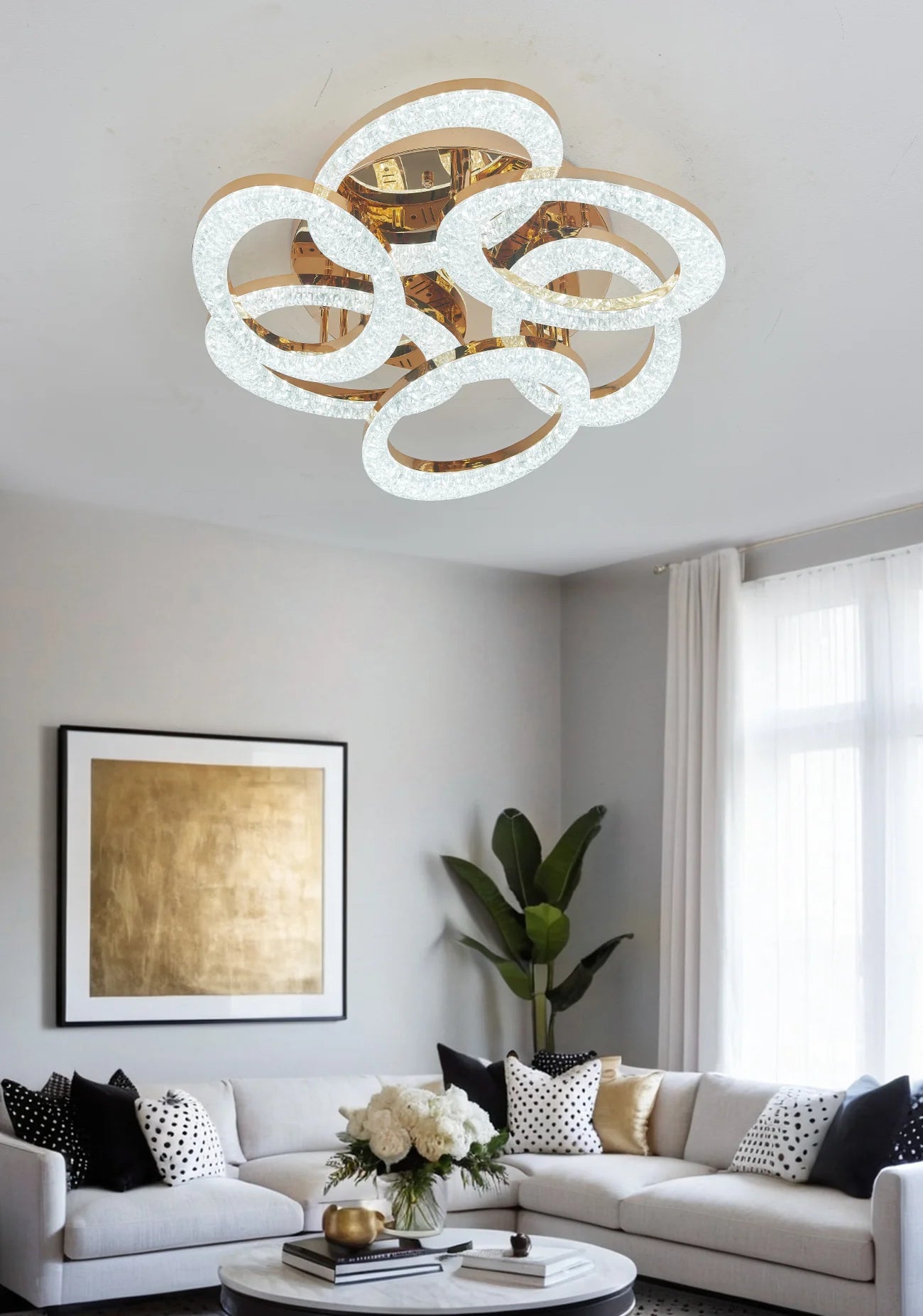 Lustra LED Bindy 168 W Cu Telecomanda, Dimabila, Auriu