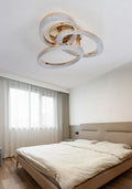Lustra LED Blake cu latimea de 59 cm, inaltimea de 20 cm, iar lungimea de 59 cm confectionata din metal auriu, cu 3 surse de iluminat tip banda LED, cu o putere de 144 W si 3 tipuri de lumina.