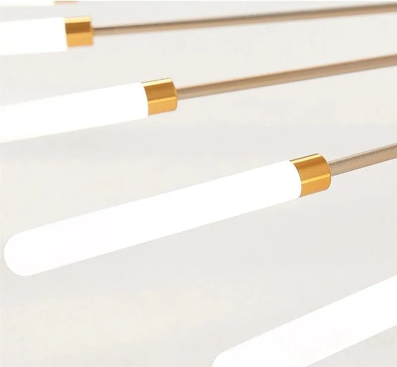 Lustra LED Crina cu latimea de 105 cm, inaltimea de 12 cm, iar lungimea de 105 cm confectionata din metal auriu si acril, cu 29 surse de iluminat tip banda LED, cu o putere de 60 W si 3 tipuri de lumina.