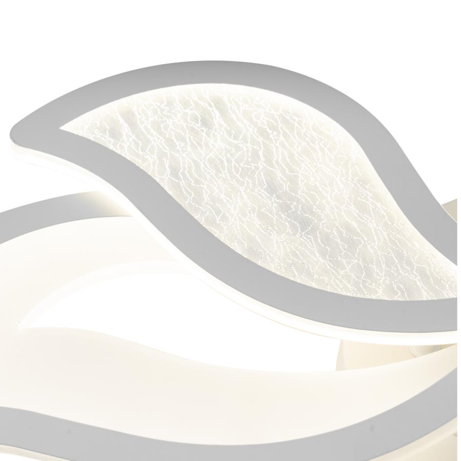 Lustra LED Fiona cu diametrul de 60 cm, confectionata din acril alb si metal, cu 6 surse de iluminat tip banda LED, cu o putere de 144 W si 3 tipuri de lumina.