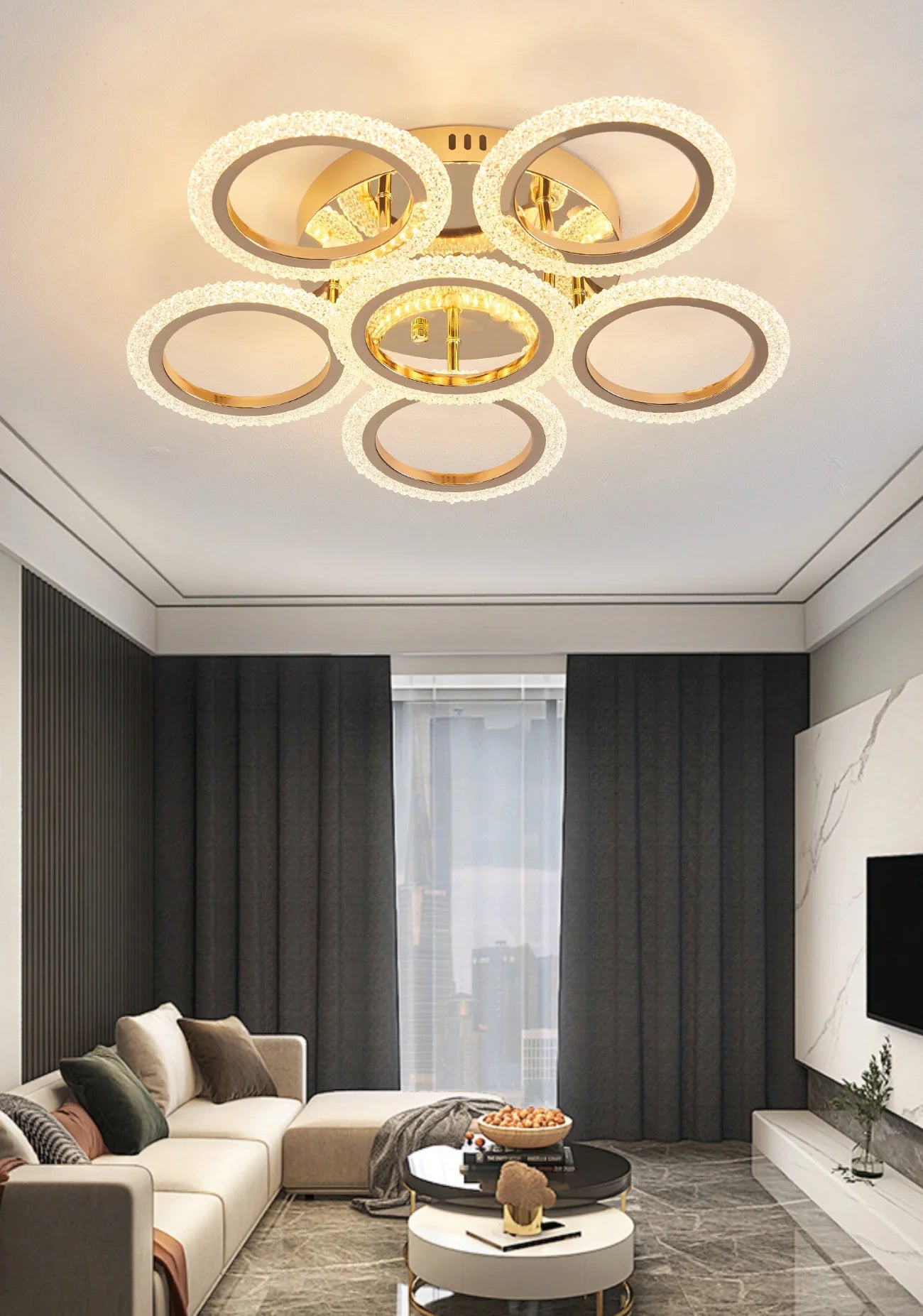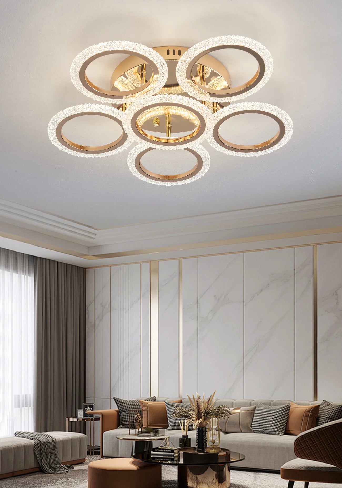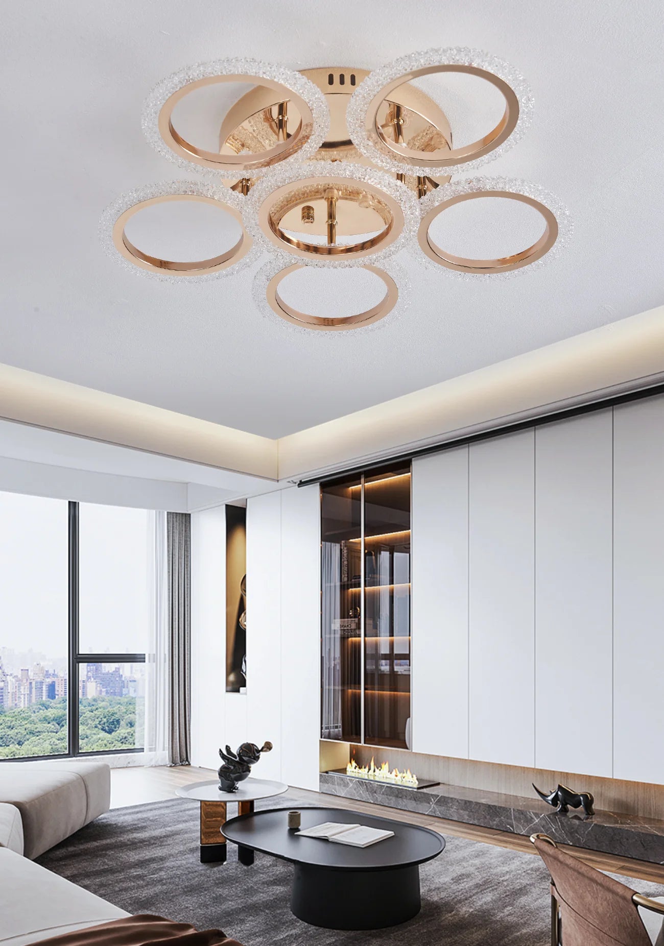 Lustra LED Freya 96 W Cu Telecomanda, Dimabila, Auriu