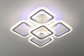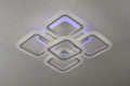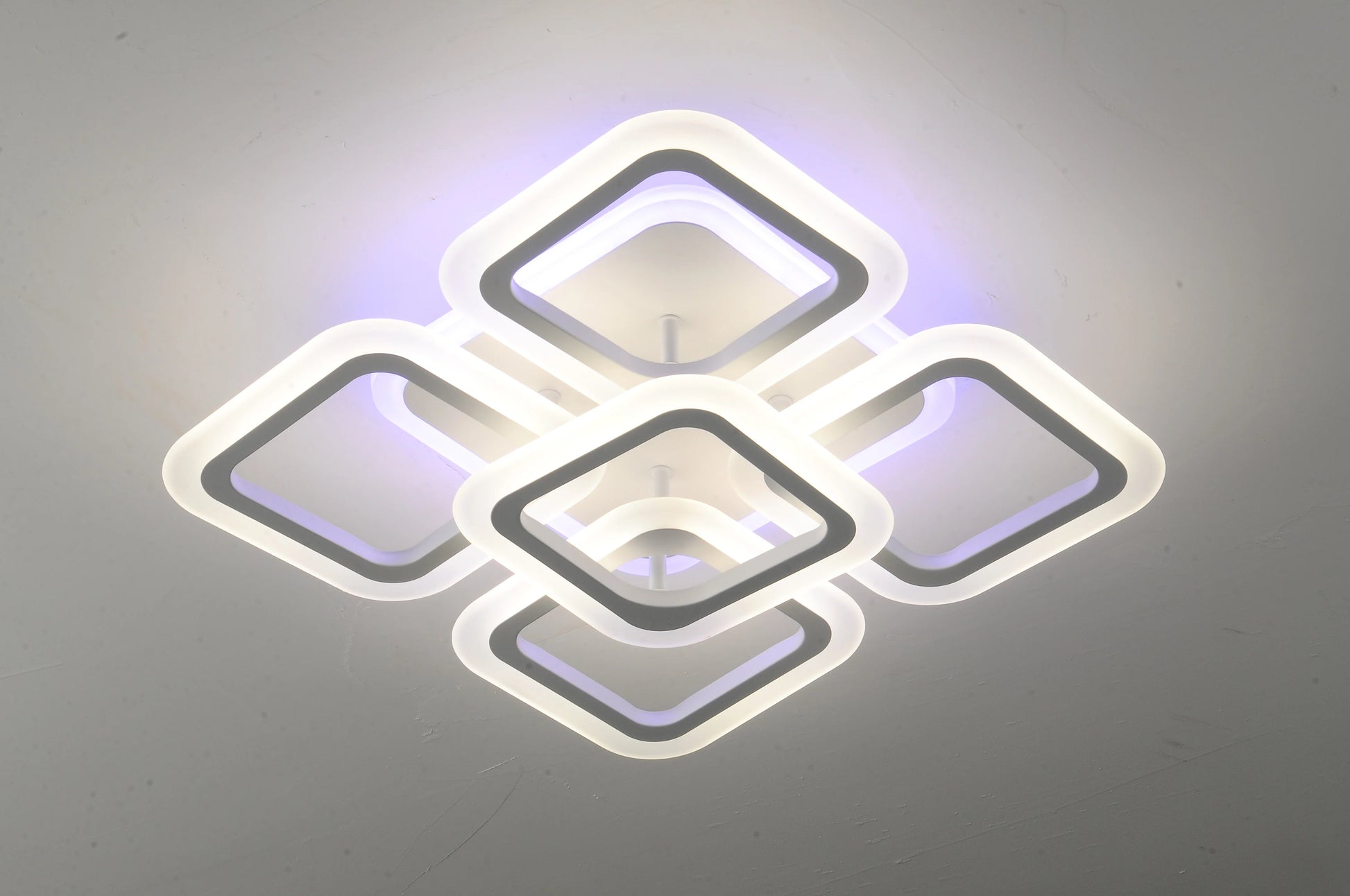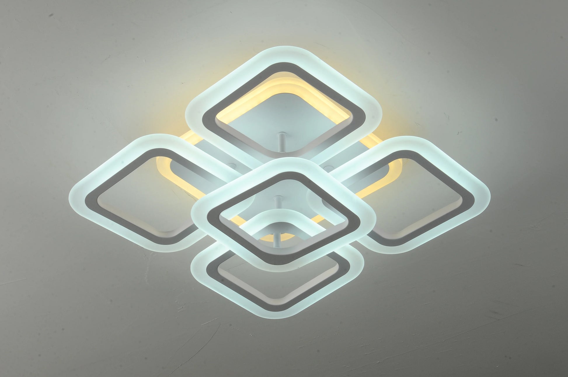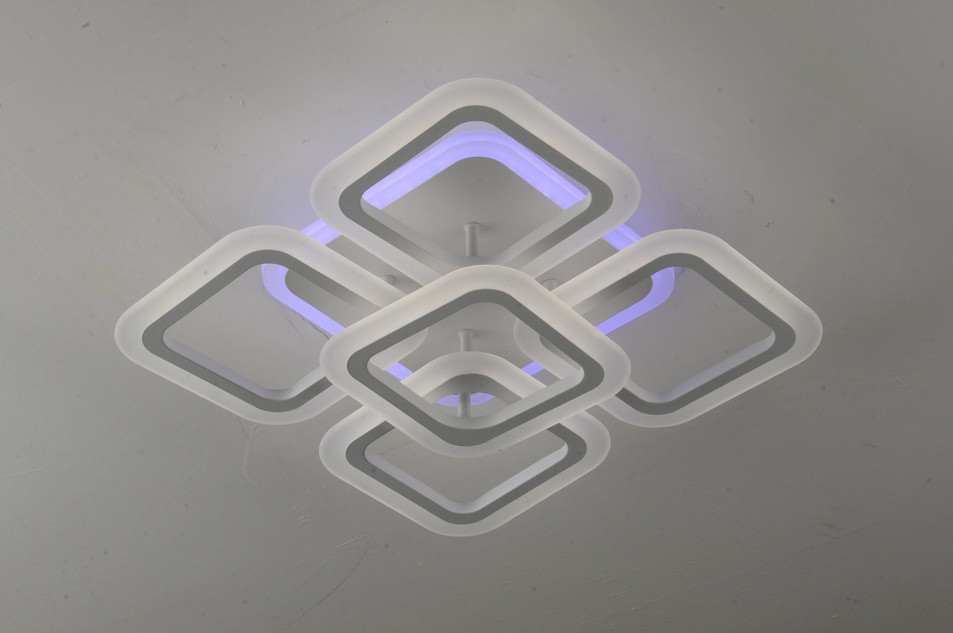 Lustra LED Jill cu latimea de 40 cm, inaltimea de 15 cm, iar lungimea de 40 cm confectionata din acril si metal alb, cu 3 surse de iluminat tip banda LED, cu o putere de 58 W si 3 tipuri de lumina + RGB.