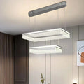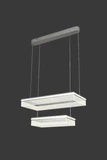Lustra LED Justina cu diametrul dreptunghiului mic de 30 cm, diametrul dreptunghiului mare de 60 cm iar inaltimea reglabila de la 40 cm la 100 cm, confectionata din metal si acril alb si gri, cu 2 surse de iluminat tip banda LED, cu o putere de 100 W si 4 tipuri de lumina.