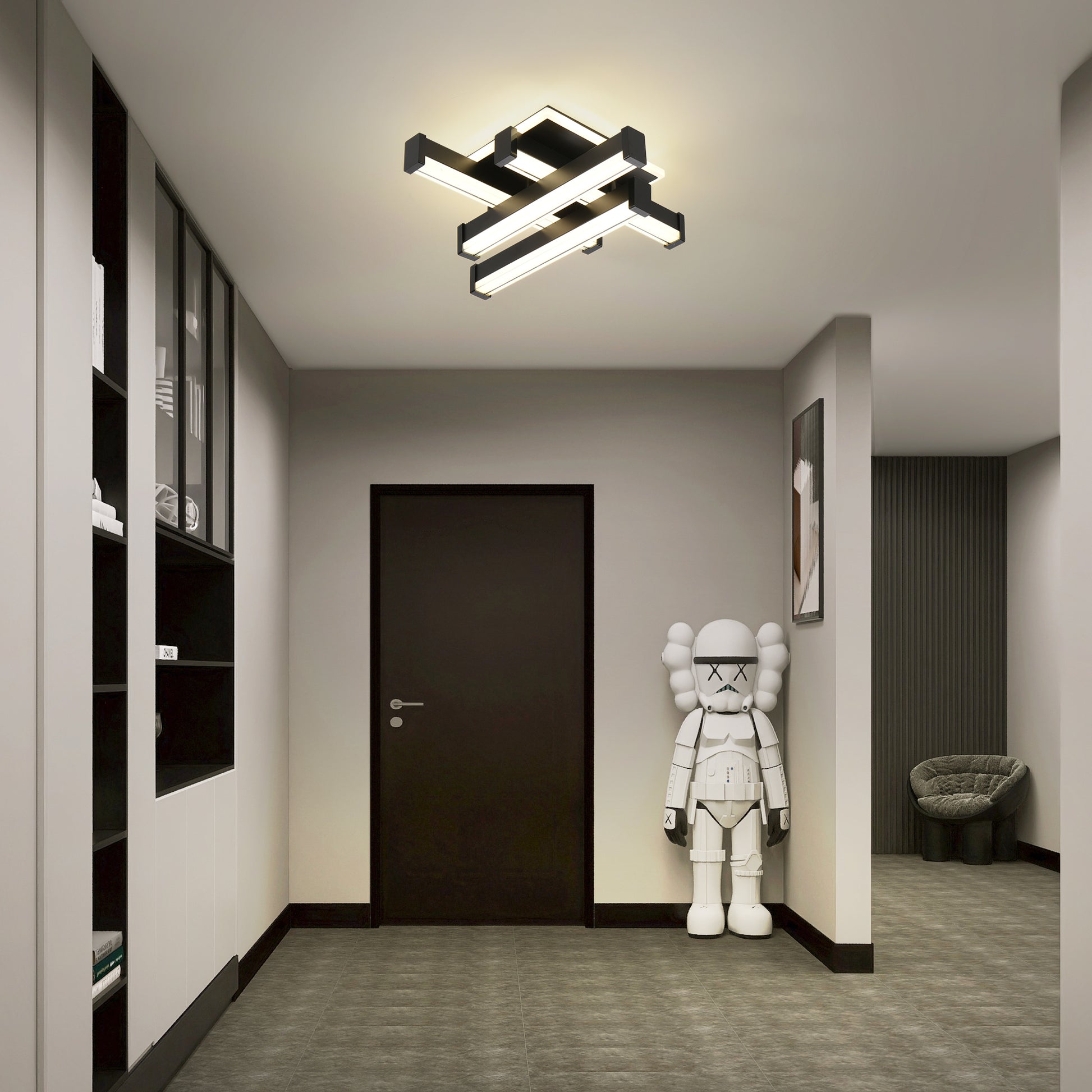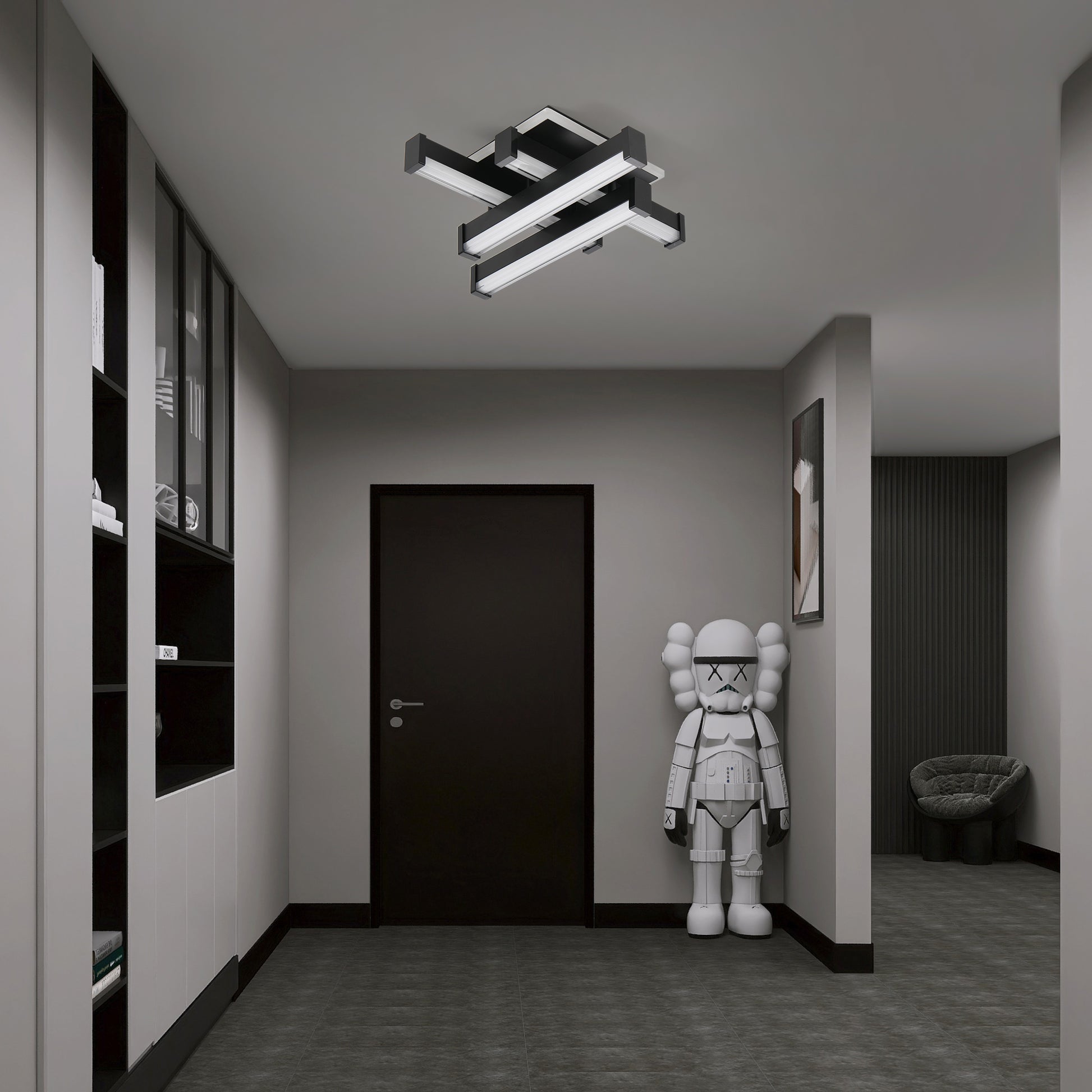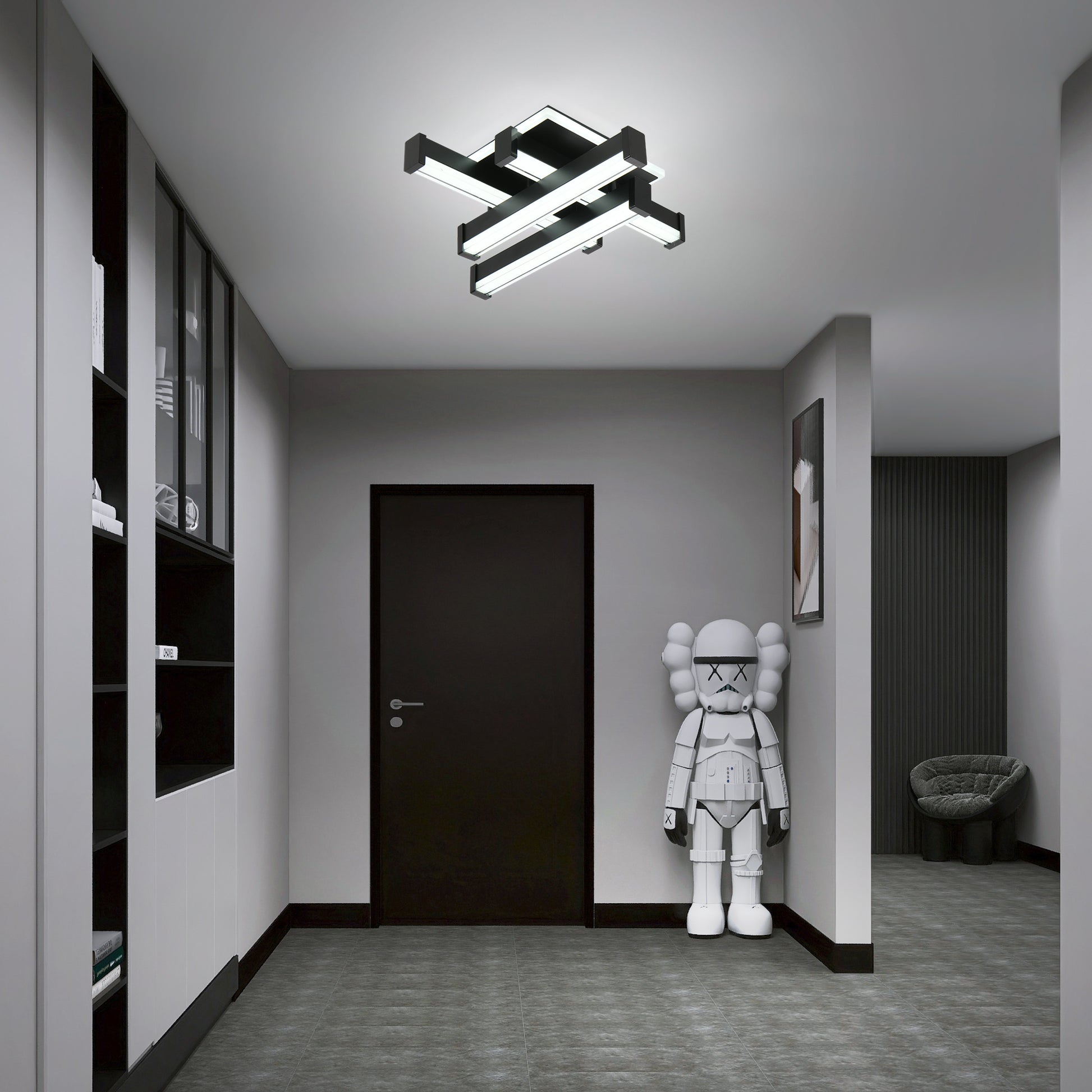 Lustra LED Mara cu latimea de 30 cm, inaltimea de 10 cm, iar lungimea de 30 cm confectionata din acril si metal, cu 5 surse de iluminat tip banda LED, cu o putere de 62 W si 3 tipuri de lumina.