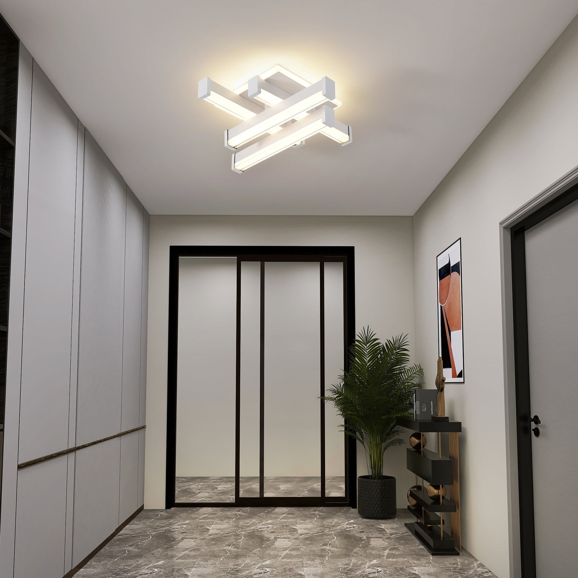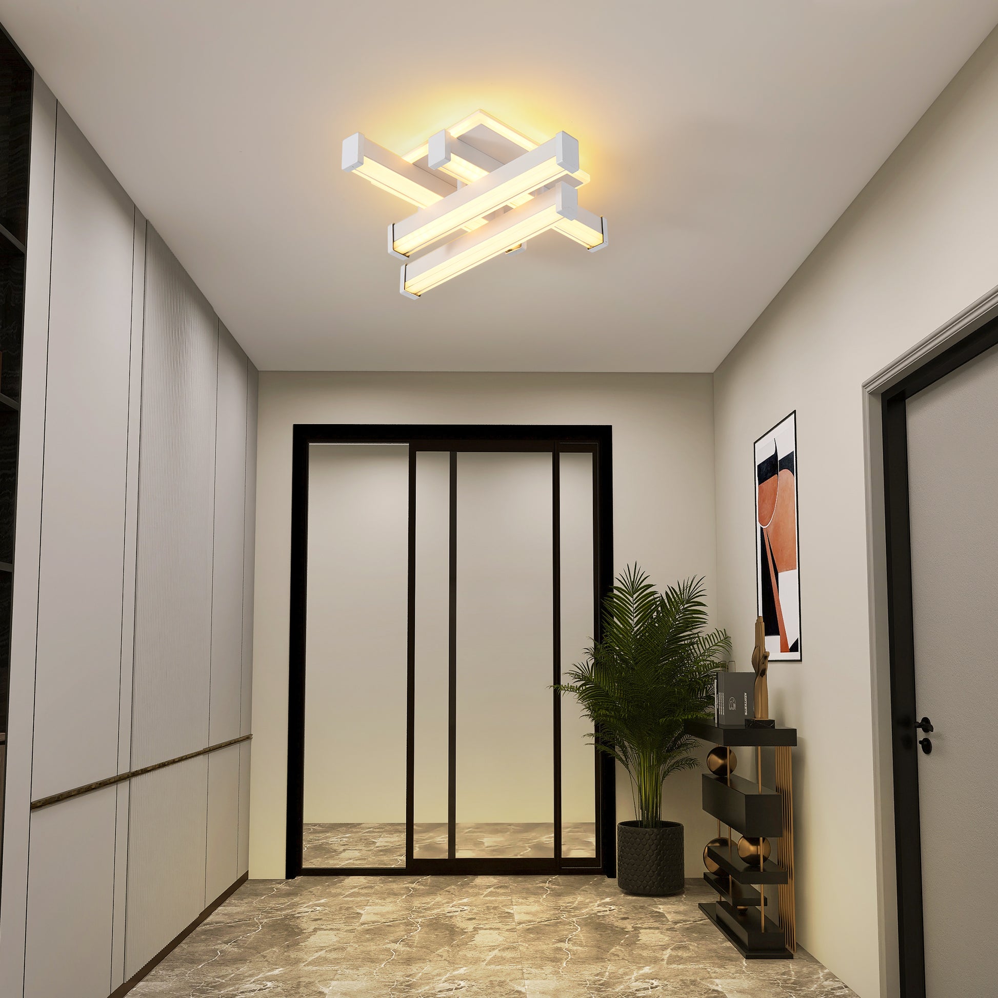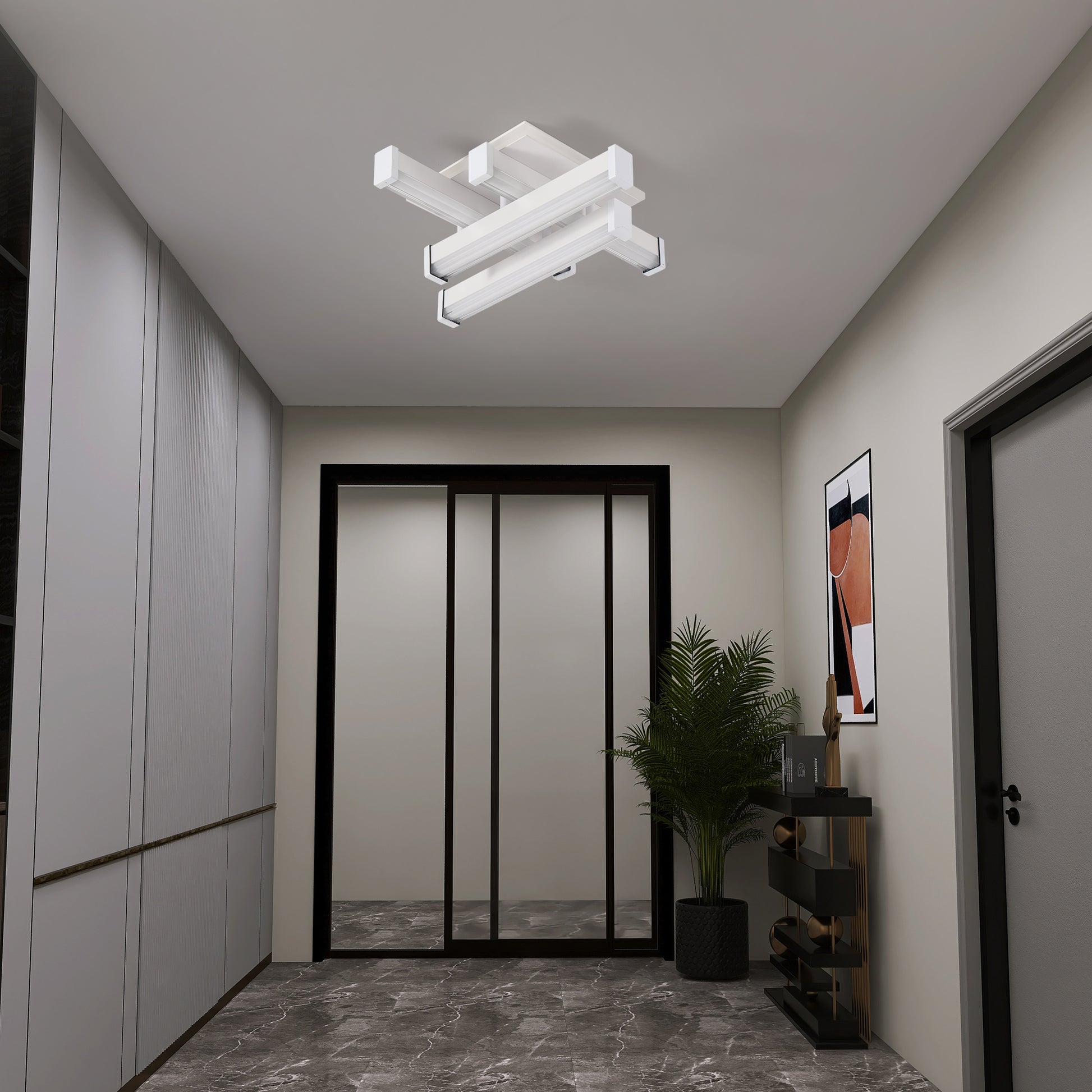 Lustra LED Melisa cu latimea de 30 cm, inaltimea de 10 cm, iar lungimea de 30 cm confectionata din acril si metal, cu 5 surse de iluminat tip banda LED, cu o putere de 62 W si 3 tipuri de lumina.