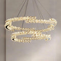 Lustra LED Naomi cu diametrul cercului mic de 30 cm, diametrul cercului mare de 50 cm, iar inaltimea de 120 cm confectionata din metal si cristal, cu 2 surse de iluminat tip banda LED, cu o putere de 118 W si 4 tipuri de lumina.
