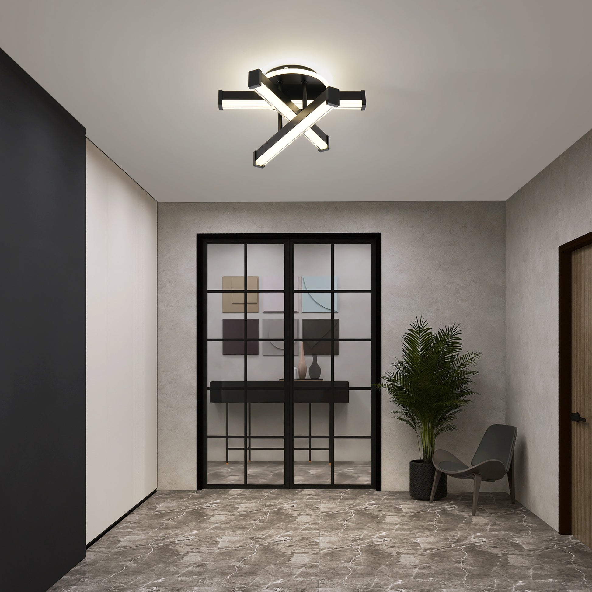 Lustra LED Olimpia cu latimea de 30 cm, inaltimea de 10 cm, iar lungimea de 30 cm confectionata din acril si metal, cu 4 surse de iluminat tip banda LED, cu o putere de 52 W si 3 tipuri de lumina.