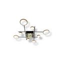 Lustra LED Pearl cu latimea de 118 cm, inaltimea de 15 cm, iar lungimea de 118 cm confectionata din acril auriu si negru, cu 9 surse de iluminat tip banda LED, cu o putere de 168 W si 4 tipuri de lumina.