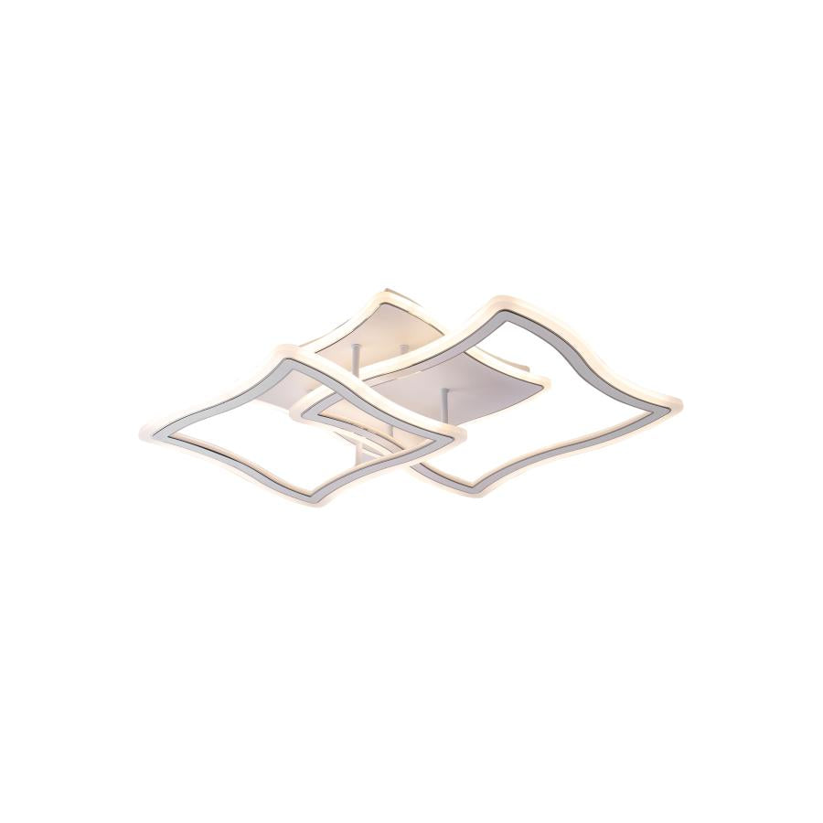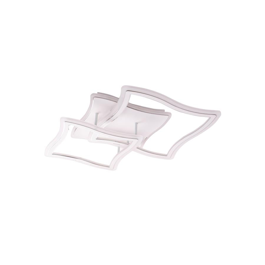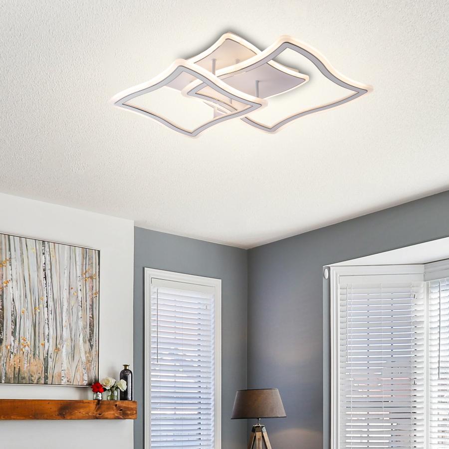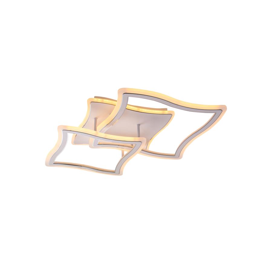 Lustra LED Rose cu latimea de 53 cm, inaltimea de 11 cm, iar lungimea de 57 cm confectionata din acril alb, cu 3 surse de iluminat tip banda LED, cu o putere de 140 W si 4 tipuri de lumina.