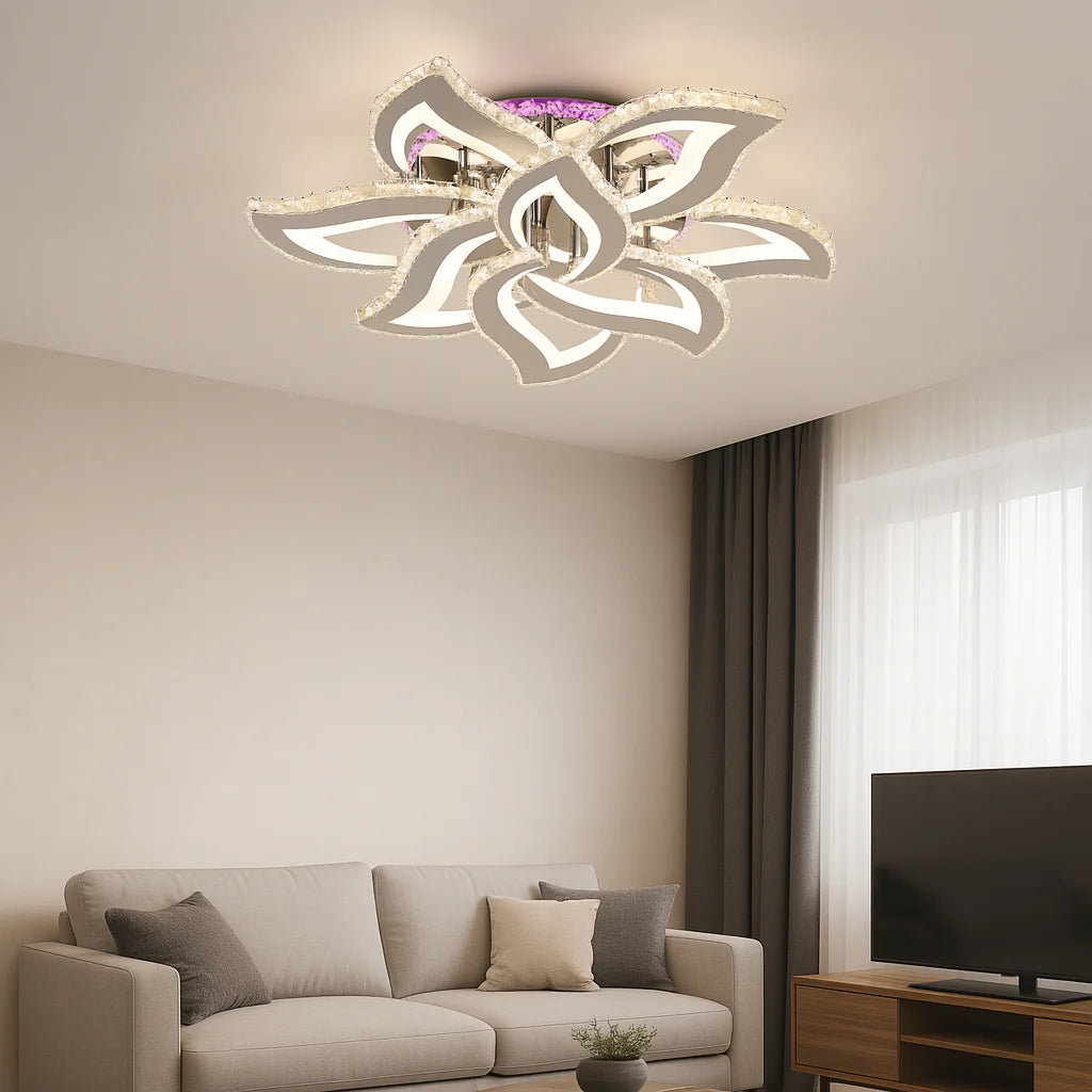 Lustra LED Sage este realizată din metal cromat și cristal, oferind un design modern și elegant pentru interior. Dispune de 9 surse de iluminat tip bandă LED, cu o putere totală de 258 W, și oferă 3 tipuri de lumină – rece, neutră și caldă – plus funcție RGB pentru a ajusta atmosfera spațiului. Include telecomandă și suport de prindere pentru o instalare rapidă și simplă.