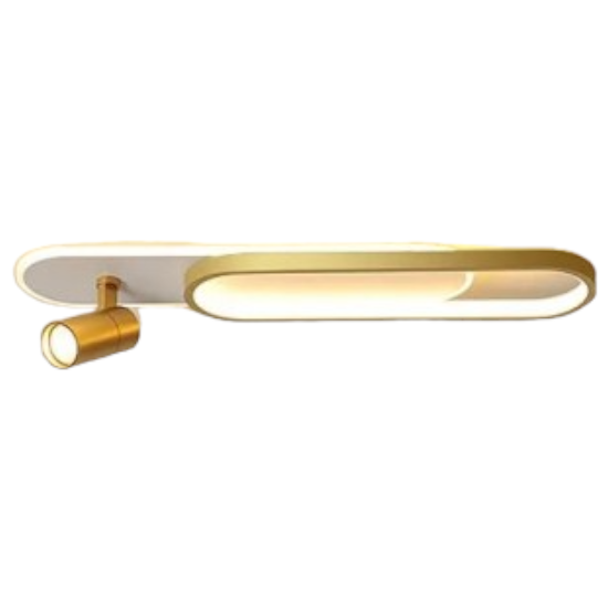 Lustra LED Silva cu latimea de 11 cm, inaltimea de 10 cm, iar lungimea de 60 cm confectionata din metal auriu si acril, cu 3 surse de iluminat tip banda LED, cu o putere de 75 W si 3 tipuri de lumina.