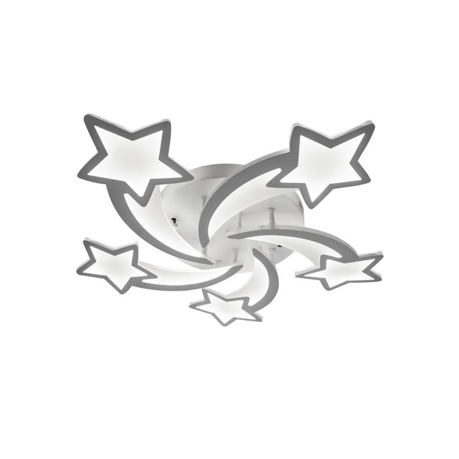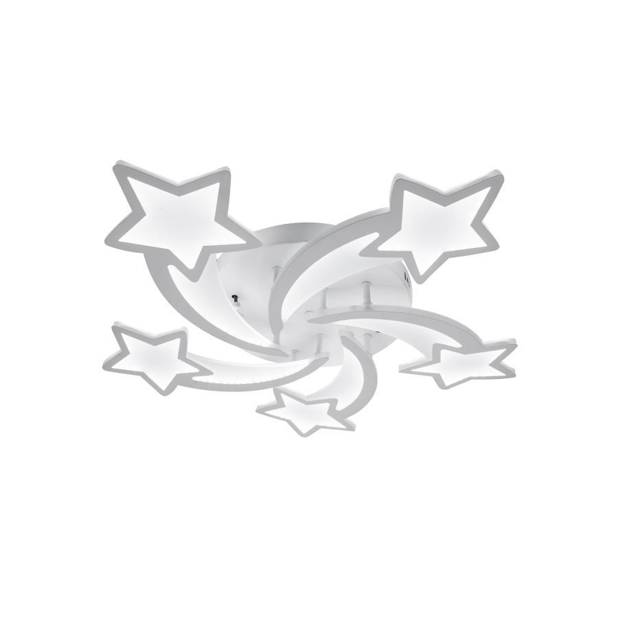 Lustra LED Star cu latimea de 65 cm, inaltimea de 9 cm, iar lungimea de 65 cm confectionata din metal alb, cu 5 surse de iluminat tip banda LED, cu o putere de 110 W si 3 tipuri de lumina.