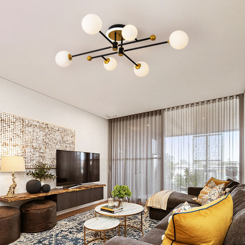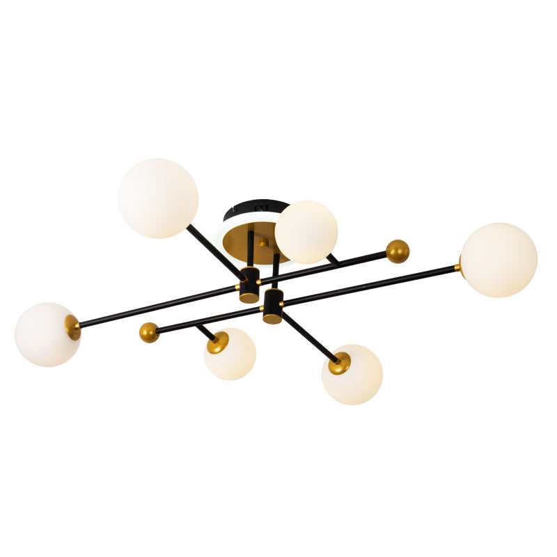Lustra LED Tery cu latimea de 78 cm, inaltimea de 12 cm, iar lungimea de 96 cm confectionata din metal auriu,negru si acril alb, cu 7 surse de iluminat tip banda LED, cu o putere de 78 W si 3 tipuri de lumina.
