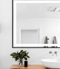 Oglinda LED Touch Oriana Sistem Dezaburire Ceas Rama Neagra 100x65 Cm