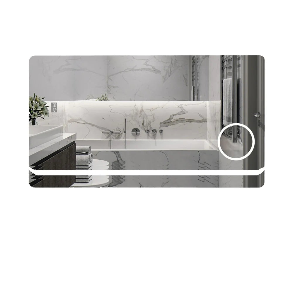 Cu un design elegant și minimalist, această oglindă este dotată cu iluminare LED integrată, oferind o sursă de lumină uniformă și eficientă energetic. Iluminarea LED este reglabilă, permițându-vă să vă adaptați atmosfera în funcție de preferințele dvs. și de nevoile momentului.